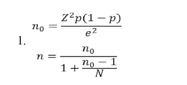 Where, “Z” is the Z-score corresponding to the desired confidence level (e.g. 1.96 for 95% confidence). “p” is the estimated prevalence or proportion (e.g. 0.5 if unknown). “e” is the margin of error (e.g. 0.05 for ±5%). “N” is the total population size.