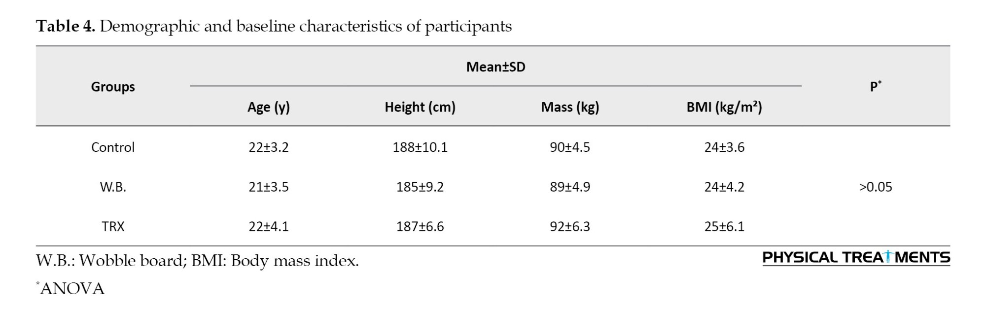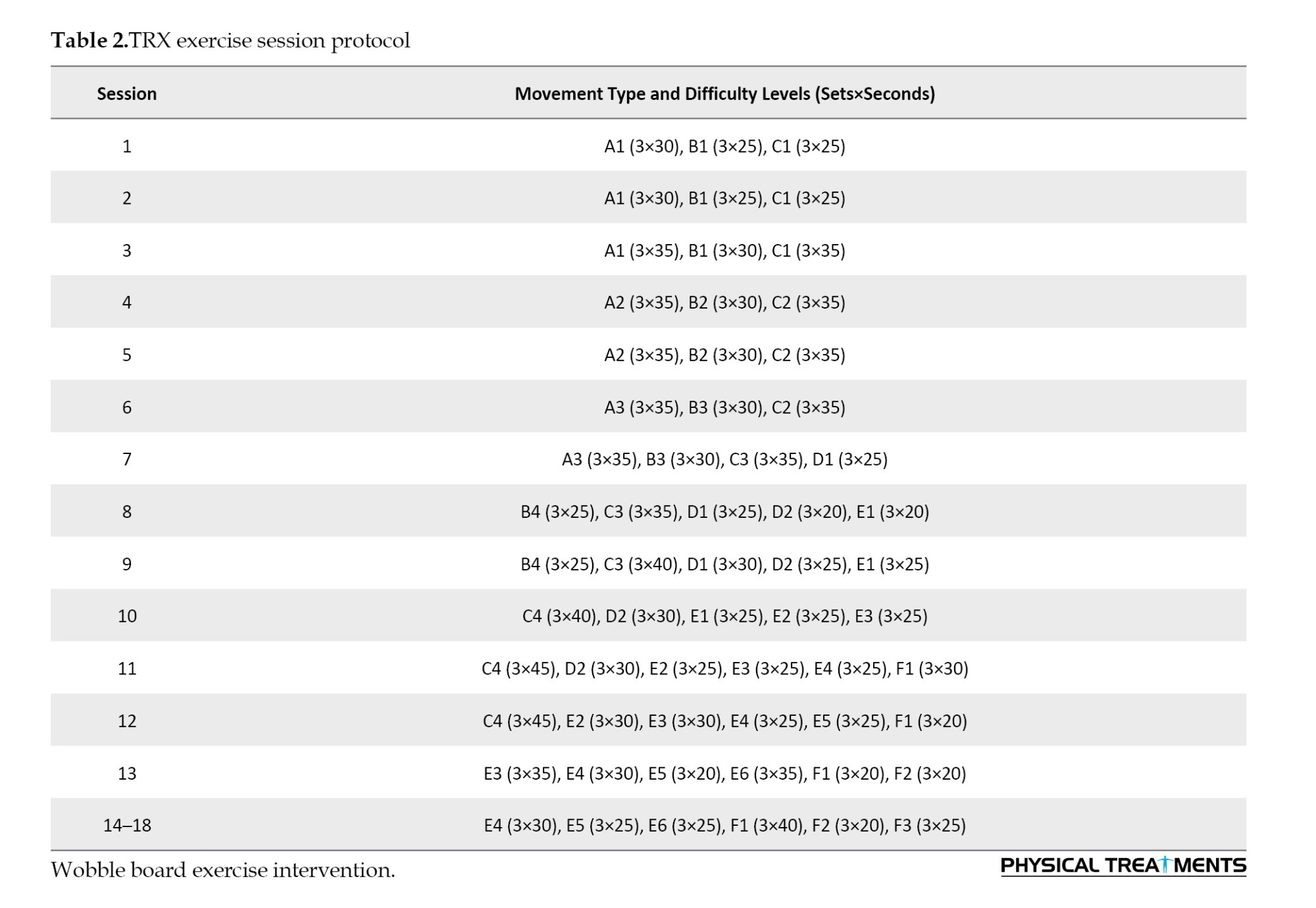 TRX exercises have emerged as a popular method of strength training in recent years, attracting interest from both athletes and fitness enthusiasts. These exercises are widely used in clinical and sports settings [16, 17]. The ease of use, versatility, and accessibility of TRX exercises make them appealing for people of all ages and fitness levels [18, 19]. These exercises effectively target and activate the core muscles, which is a key benefit for improving overall strength and stability [17]. It has been shown that the core muscles play a crucial role in maintaining balance and proper function of the lower limbs during sports activities [20]. Strength training with TRX has been shown to improve muscle strength and activate proprioceptive receptors, which are crucial for maintaining balance and proper function of the lower limbs during sports activities [21]. While TRX suspension training incorporates a broad range of physical exercises, this study specifically focused on exercises aimed at enhancing proprioception, dynamic balance, and neuromuscular coordination. By concentrating on these targeted exercises, the study provides valuable insights for rehabilitation professionals and sports trainers. Despite the proven effectiveness of both wobble board and TRX training in improving balance, there is a limited number of comparative studies evaluating their relative efficacy in managing functional ankle instability. This research aimed to fill this gap by offering evidence-based recommendations for rehabilitation strategies and assessing the effectiveness of these training interventions on static and dynamic balance indices, including the retention of improvements after a period of de-training.