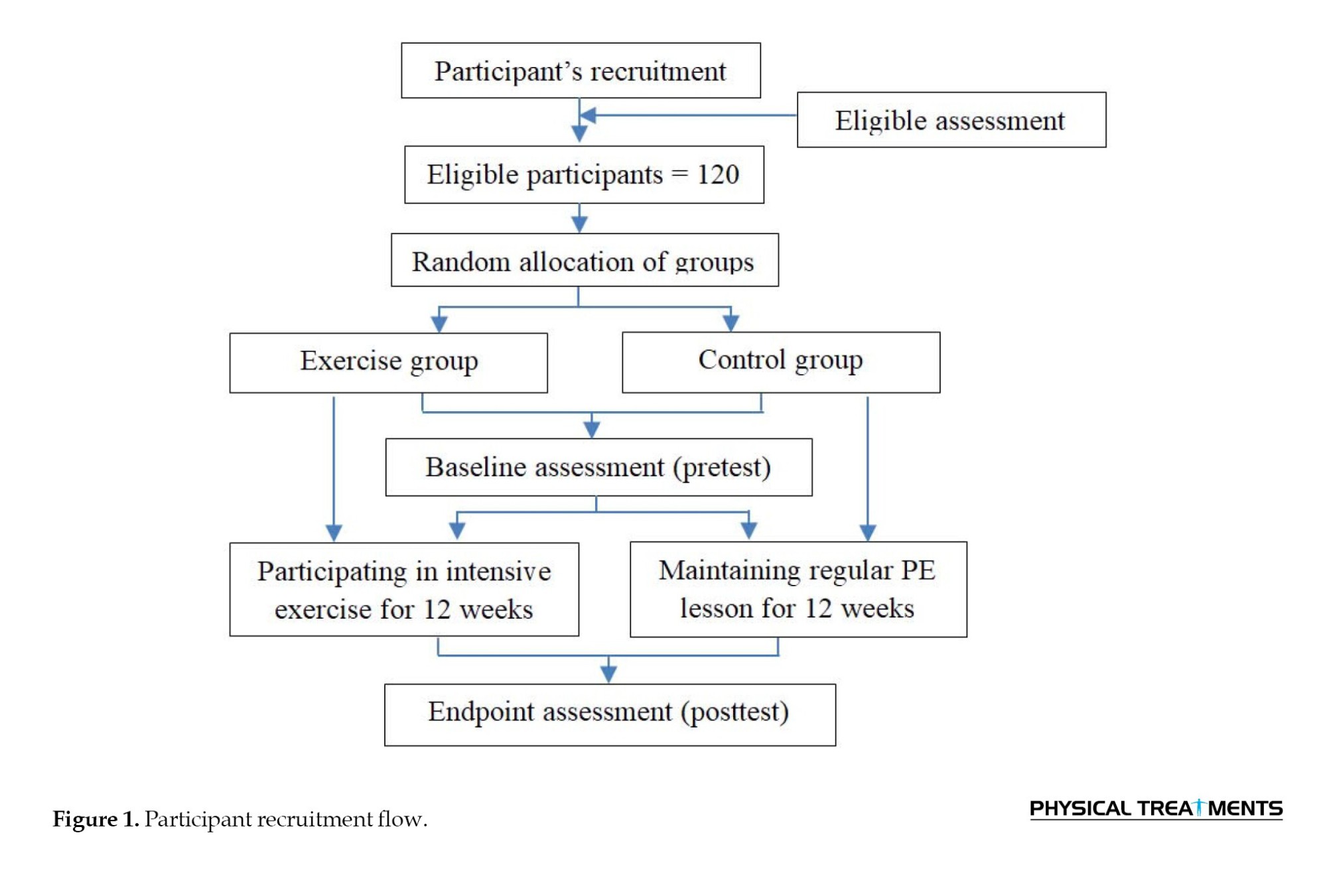 Subjects in the exercise group were instructed to engage in selected intensive physical exercises three times per week for 12 weeks, including both in-class and out-of-class sessions. Each training session incorporated warm-up and cool-down periods, with safety measures in place throughout the program. Qualified teachers and trainers provided comprehensive instruction on the proper execution of all exercises.